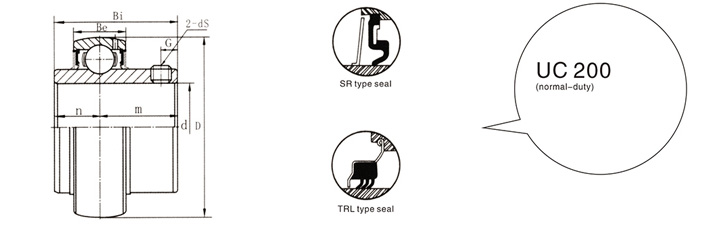The spherical ball bearing with top screw produced by our company includes UC200 series (light series), UC300 series (heavy series) and its deformation product SB (UB) 200 series. There are two jackscrews on this type of outer spherical bearing, with an included angle of 120 °. Its feature is that when cooperating with the shaft, the jackscrew is used to jack the shaft, and then has a fixed effect. Its operating environment requires a small oscillation scale. It is applied to the through-shaft with large rigidity difference and deflection. The bearing is equipped with sealing rings on both sides, which can strictly prevent dirt invasion. When leaving the factory, an appropriate amount of lubricant has been filled. Before installation, it is not necessary to clean and add lubricant. UC200 bearing is the most widely used type of outer spherical bearing. It can be used with various types of bearing blocks on a variety of machines. UC300 series can bear larger loads than UC200 series coaxial diameter size, and it can be used with various types of bearing blocks on a variety of machines with larger loads.