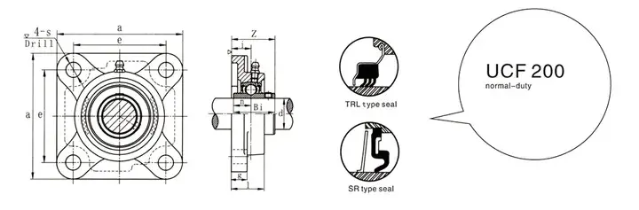 Our company's UCF series mainly includes UCF200 and UCF300 series. Bearing pedestal F can also be assembled with bearings UK, UEL (NA), UB, SB, etc. This series is mainly suitable for installation on the vertical plane such as the side of the machine, such as transmission device, crusher, shot blasting machine, etc. For example, due to the dust in the environment where the crusher is located, it is easy to have some gravel in the air. The UCF series with stamping through cover and blind cover provided by Guoxin Company can better protect the bearing and operate better, with small volume and compact structure. They can be installed directly without disassembling other components and the parts used together with the original bearing, which will save installation time and reduce costs.
